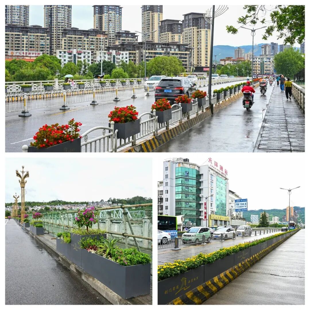 在澳援大桥、老鹰嘴大桥、蜀门大桥等11处花卉点位,则采用了20余种花卉植物,总共使用40万盆花卉进行装点。