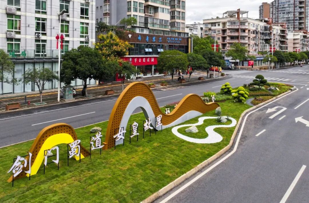 据悉,此次苴国路中央绿化分车带提升改造涉及18个端头、中间段外边缘及林下植物,改造总面积约10000平方米。按照雨水花园 水墨山水流线造型 植景龟式地形进行营造,打造“剑门蜀道 女皇故里”和“古苴文化”两组景观小品,通过选用造型植物和花卉植物,形成以橙黄、红绿为色彩基调的绿化景观。