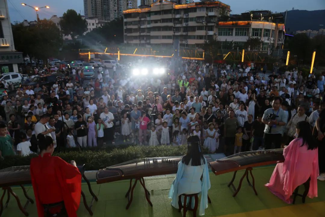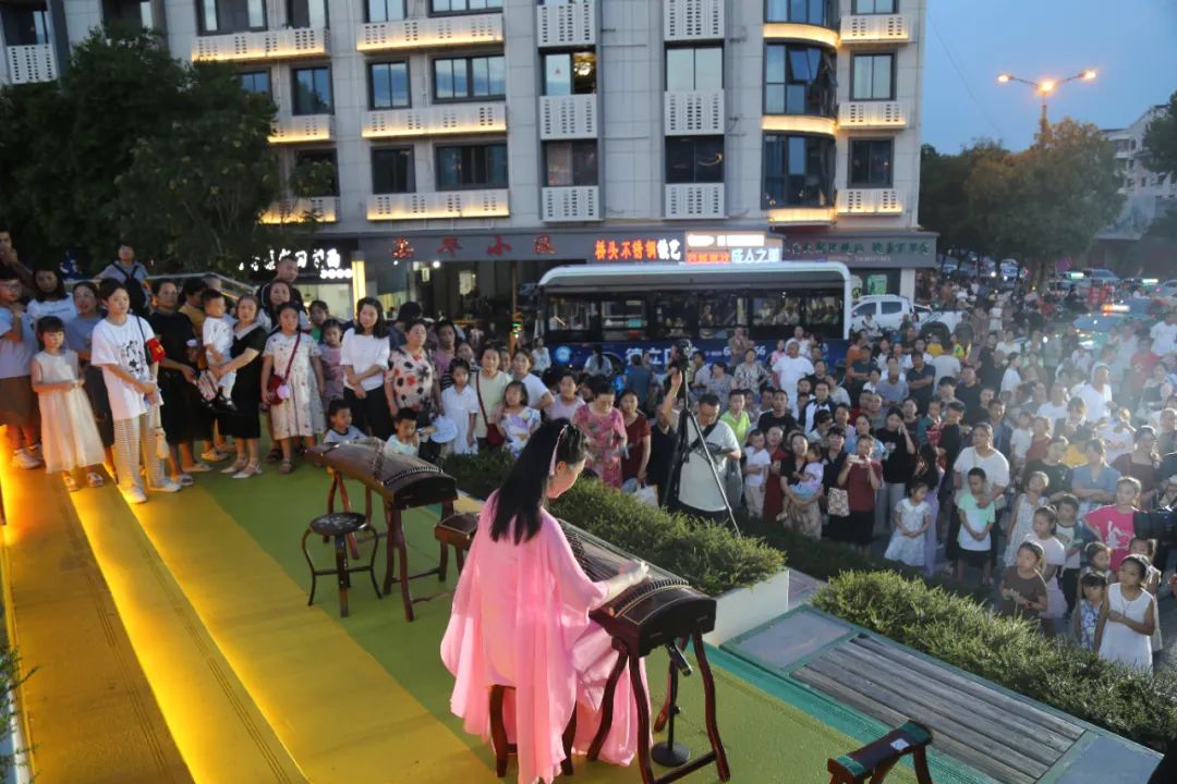 19时30分,演出在经典曲目《渔舟唱晚》的美妙旋律中正式拉开帷幕。来自市某民乐培训学校的三名女演员身着典雅的演出服,手指在琴弦上灵动飞舞,为现场观众送上了一场令人直呼惊艳的视听盛宴。当曲至高潮部分,现场扎堆围观的近千名市民被这精彩的演奏所感染,纷纷送上了热情的掌声与欢呼声,将现场气氛推向了一个小高潮。